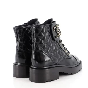 Chanel Women’s Chain CC Cap Toe Lace Up Combat Boots Quilted Shiny Calfskin