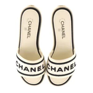 Chanel Women’s Logo Mule Sandals Embroidered Leather