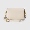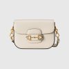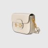 Petite versions of the Gucci Horsebit 1955 add a hybrid twist to the vintage inspired line. Enriched with two different shoulder straps, the black leather mini bag’s character transforms from understated elegance with a tonal leather strap to a strong logo feel thanks to a red and green Web option.