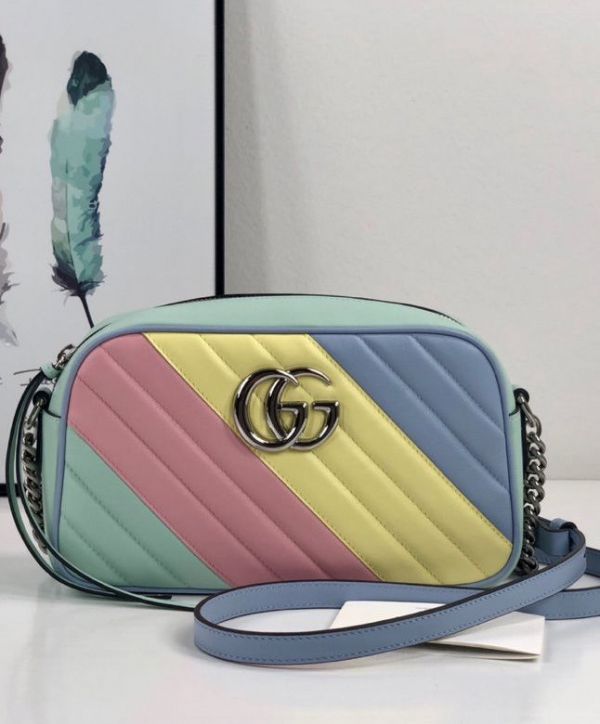 2022 New Gucci GG Marmont Silver Chian Strap Zipper Closure Double G Signature Women Colorful Diagonal Quilted Leather Crossbody Bag Small