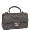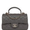 Chanel Mini Rectangular Flap Bag with Top Handle Dark Grey Lambskin Light Gold Hardware