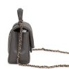 This Mini Rectangular flap bag is in dark grey lambskin with light gold tone hardware and has a front flap with signature CC turnlock closure, rear half moon pocket, top handle and single interwoven dark grey leather and light gold tone chain link shoulder/crossbody strap.