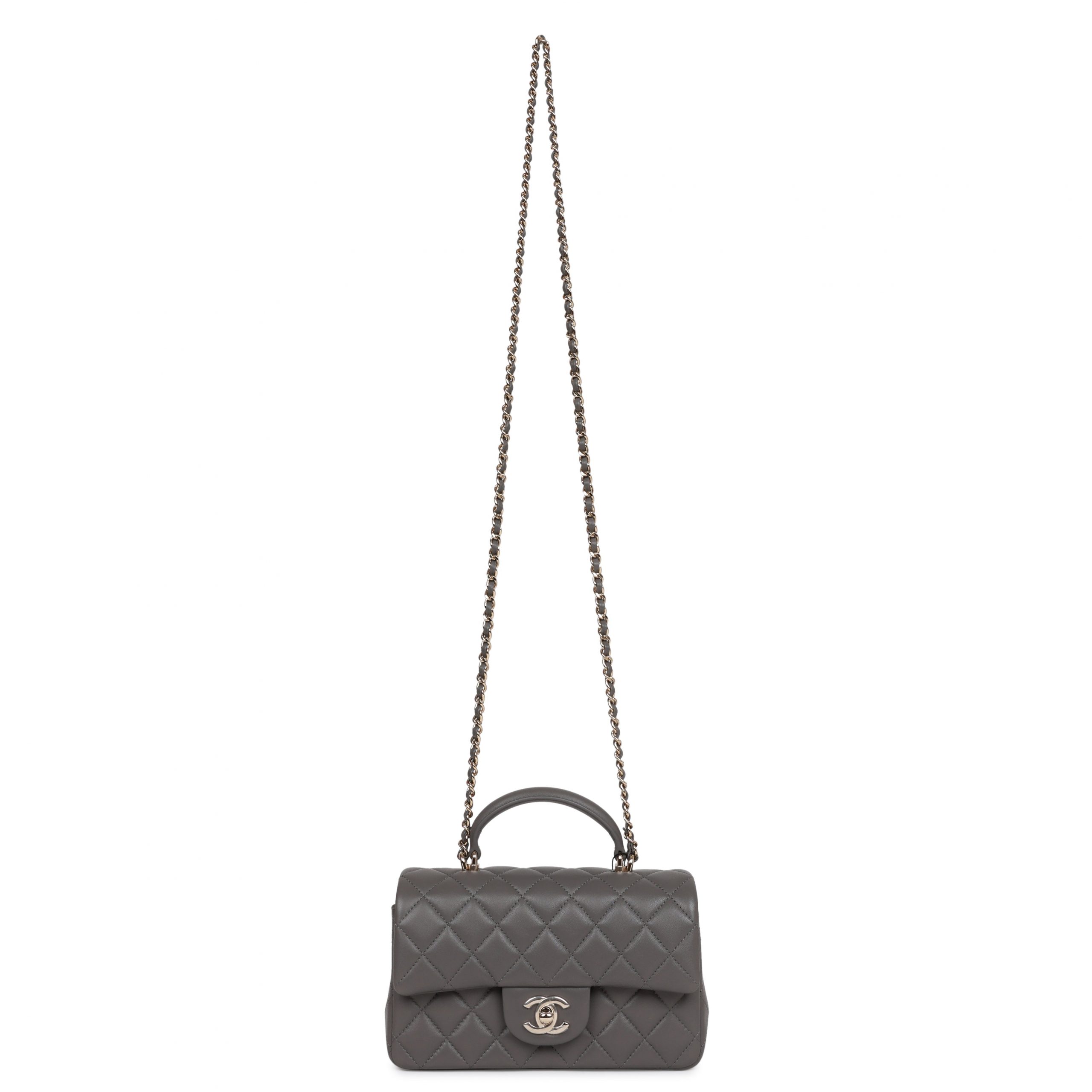 Home Bag Chanel Chanel Bags Chanel Mini Rectangular Flap Bag with Top Handle Dark Grey Lambskin Light Gold Hardware