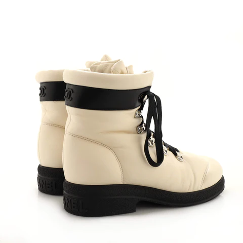 Chanel Women’s # Neige Lace Up Ankle Hiking Boots Leather