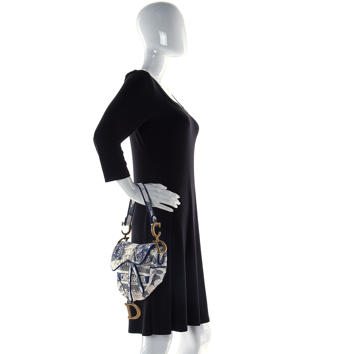 CHRISTIAN DIOR Canvas Embroidered Around the World Saddle Bag Blue