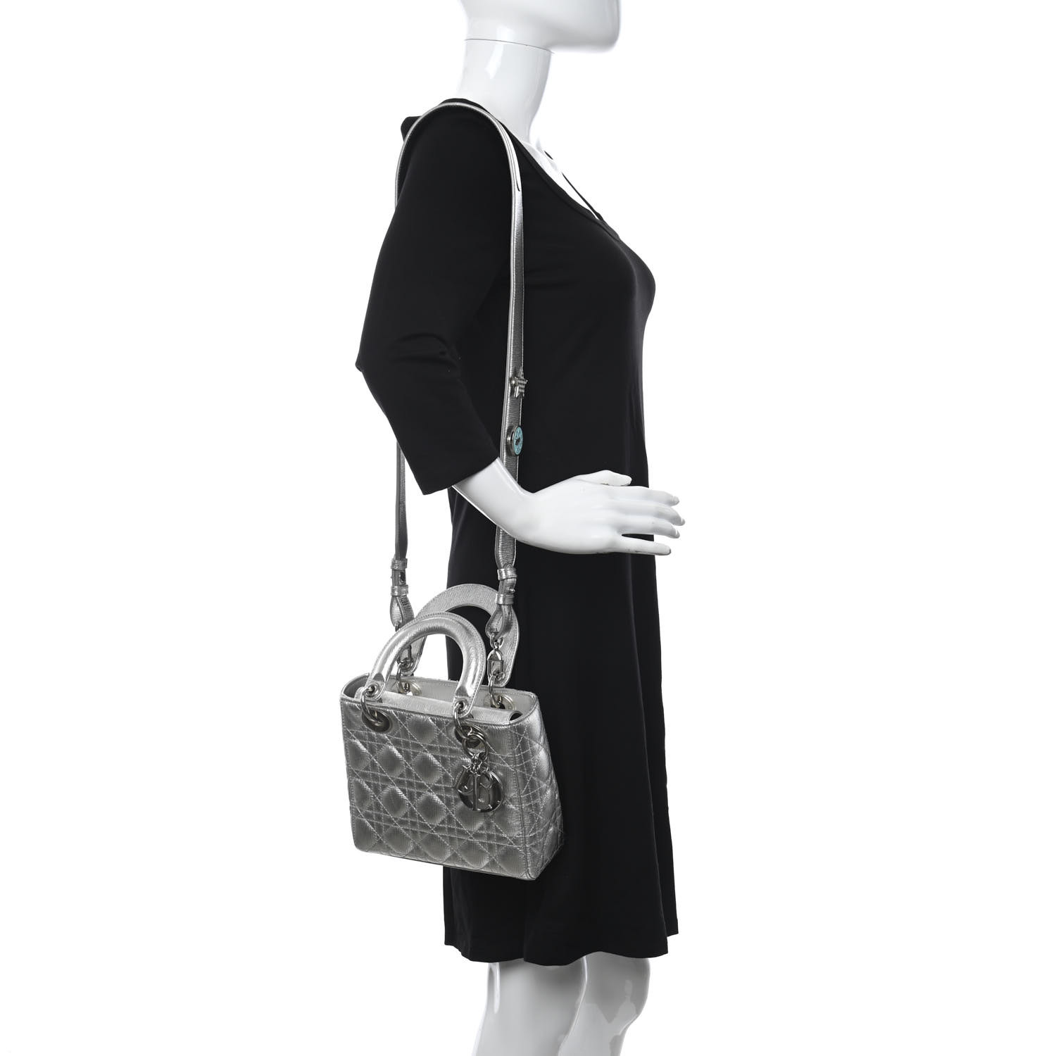 CHRISTIAN DIOR Metallic Grained Calfskin Cannage Small My Lady Dior Silver