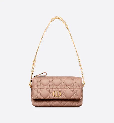 The Dior Caro pouch is a practical and elegant creation. Crafted in blush supple calfskin with Cannage stitching, it reveals a ‘CD’ signature flap and several compartments to hold all the essentials. The removable chain allows it to be worn over the shoulder, while it may be carried crossbody with its removable and adjustable shoulder strap, thus making it an ideal daily companion.