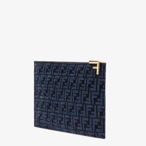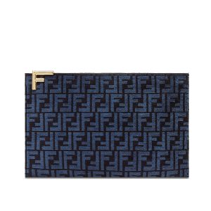 Fendi Large Flat Pouch FF Jacquard Fabric in Black