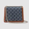 The Dionysus mini bag, crafted in Double G jacquard eco-wash denim, is a powerful addition to the Epilogue collection. The handbag continues the brand’s design concept of using new methods to interpret classic elements, cleverly incorporating bright blue enamel details in the collection’s iconic tiger head lock, which contrasts with the dark tones of the denim fabric. Contrasting-tone leather piping adds glamour to the overall design.