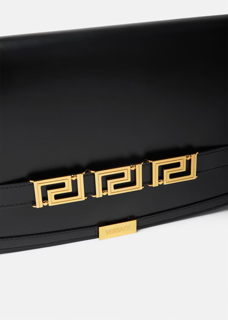 Crafted in Italy from smooth leather, the long Greca Goddess clutch is characterized by the Greca chain hardware – set on a horizontal hand-slip that allows for the accessory to be securely carried in-hand.