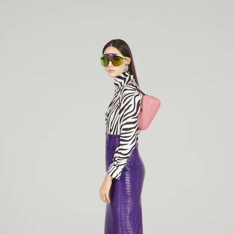 A nod to styles popular during the late 1990s and early 2000s, the Aphrodite line welcomes a new shape with this small shoulder bag, which pairs the essential design with pop colours and the unmistakable Double G hardware, for a sleek yet unexpected look. Here, it’s presented in a soft light pink leather with a gold-toned zip closure.