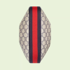 An ode to the timeless Hollywood glamour that shaped Gucci Love Parade, classic elements from the House’s archives are reintroduced. Distinguished by its crescent moon shape, this small shoulder bag further defined by a G shaped hook closure. Paired with soft materials, the heritage hardware creates a refined design with vintage appeal. GG Supreme canvas in beige and blue accentuate the logo feel.