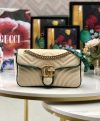 Gucci GG Marmont Black Diagonal Matelasse Quilted Leather Red Trimming Classic Brass Logo Garniture Lady Brass Chain Clutch Bag