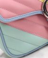 | Handbag Exterior | Colorful Matelasse Diagonal Leather And Sky Blue Trimming Copy Crossbody Bag With Silver-toned Hardware, Oversized Flip-over Flap With Iconic GG Logo Buckle, Sliding Chain Shoulder Strap With Leather Shoulder Pad |
