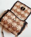 Gucci GG Marmont Crochet Flower Pattern Gold Logo Buckle Women Beige & Camel Viscose Raffia Flap Crossbody Bag
