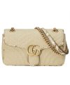 Gucci GG Marmont Raffia Snakeskin Trimming Brass Logo Spring Closure Link Shoulder Strap Women Shoulder Bag Beige
