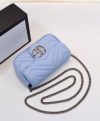 Gucci GG Marmont Silver Logo Magnetic Buckle Light Blue Super Mini Chain Bag Women Fashion Chevron Design Crossbody Bag