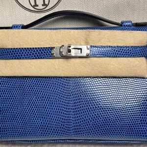 Hermes Kelly Pochette Bleu Saphir Lizard Palladium Hardware – DP for HR
