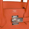 This Birkin is in?Orange Poppy?clemence leather with palladium hardware and has tonal stitching, front flap, two straps with?center?toggle closure, clochette with lock and two keys, and double rolled handles.?