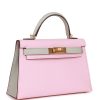 Hermes Special Order (HSS) Kelly Sellier 20 Rose Sakura and Gris Perle Chevre Gold Hardware