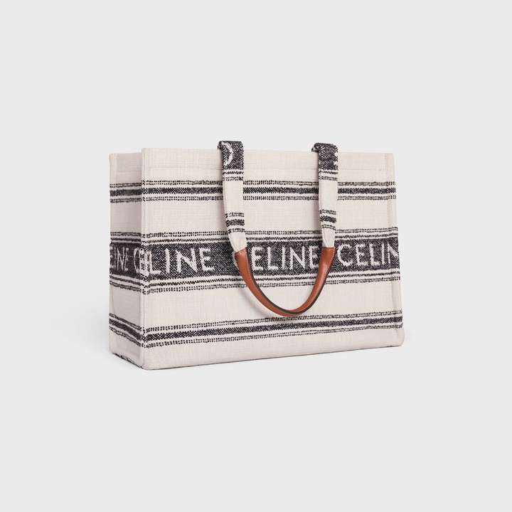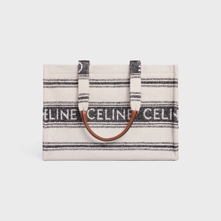 LARGE CABAS THAIS IN STRIPED TEXTILE WITH CELINE JACQUARD WHITE / BLACK