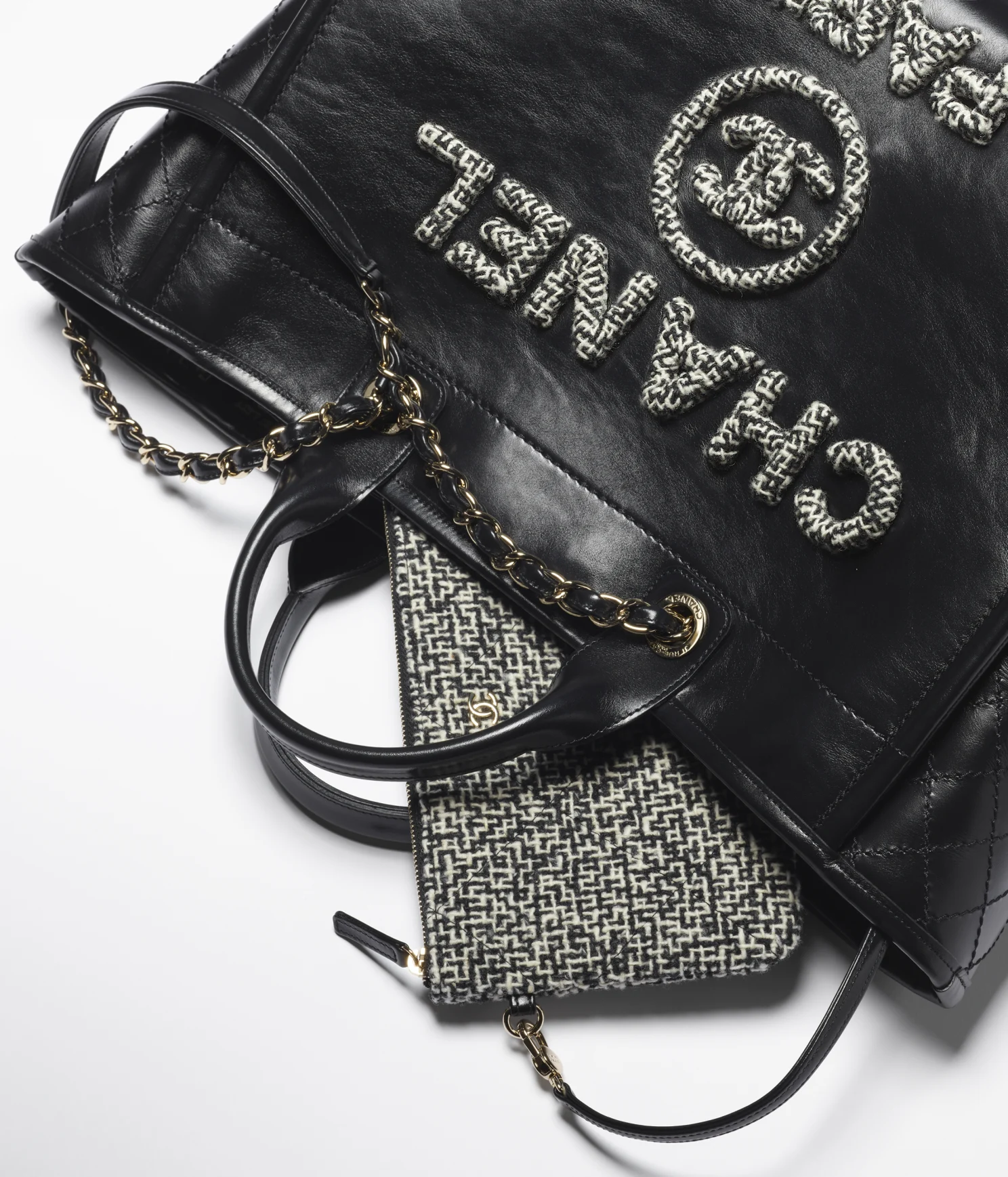 Calfskin, Tweed & Gold-Tone MetalBlack