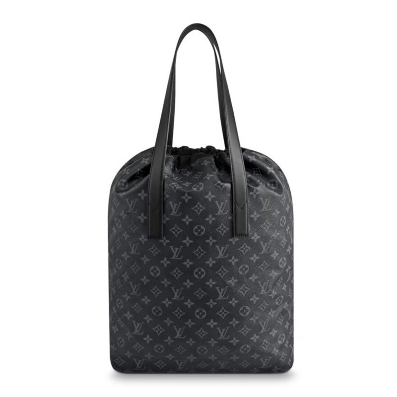 15.6 x 19.5 x 6.2 inches•Monogram Eclipse coated canvas•Textile lining•Cowhide leather trim•Silver colored metallic pieces•2 leather handles•Drawstring opening•1 removable pouch