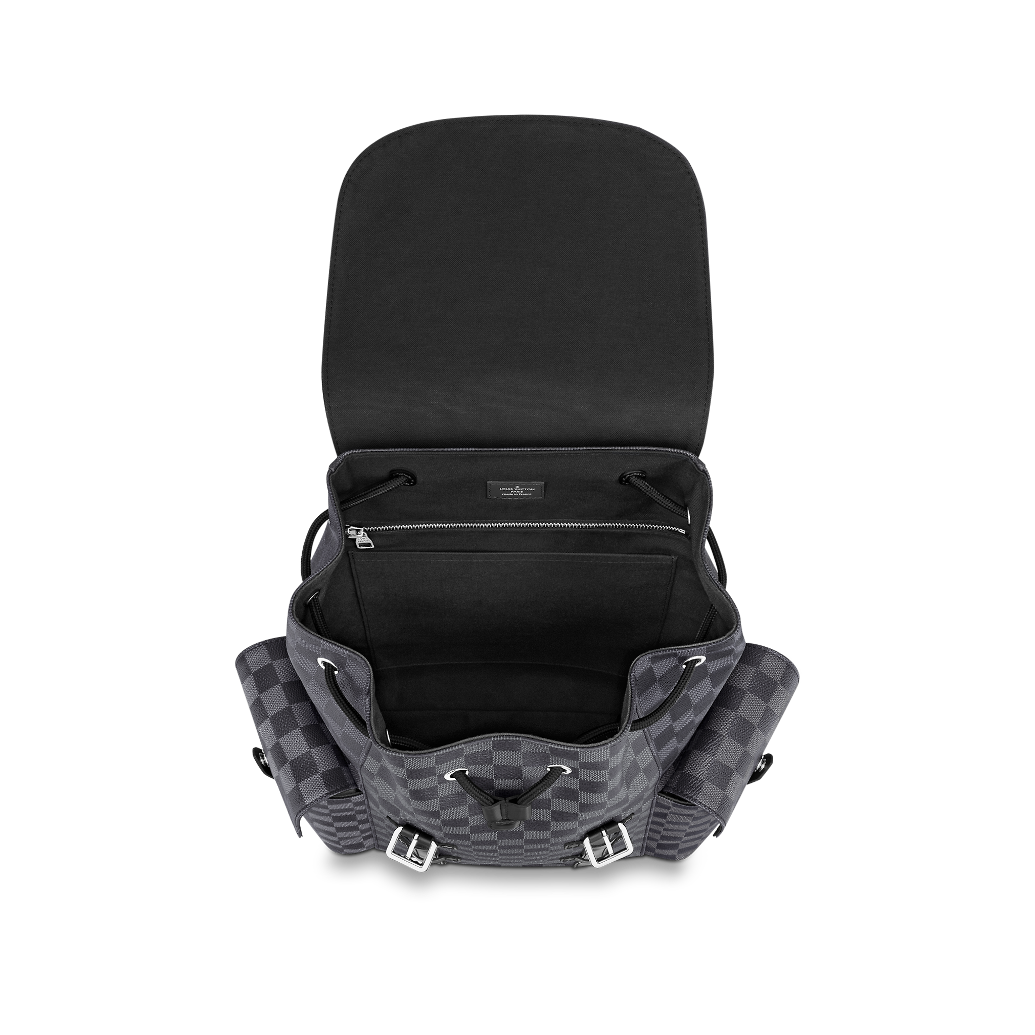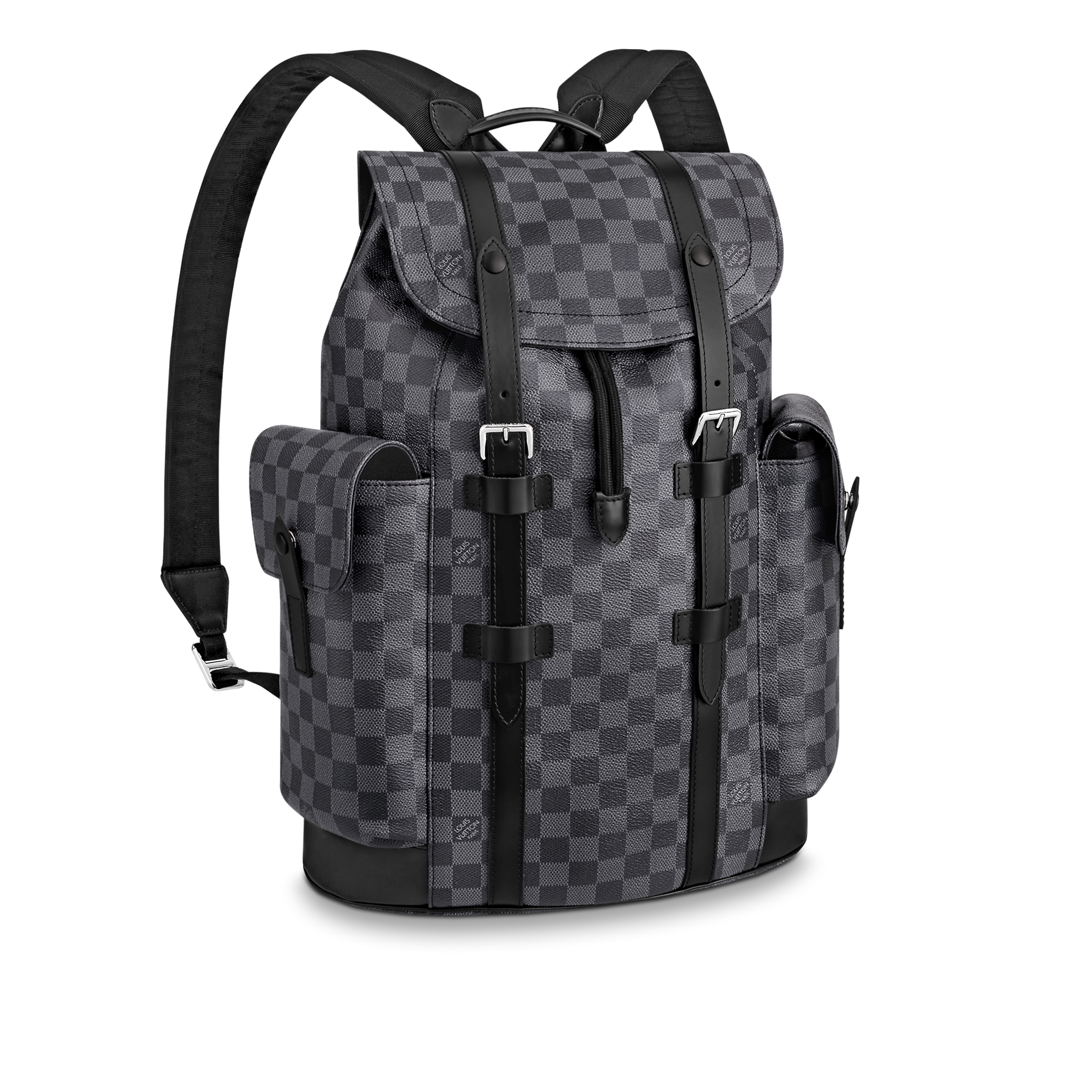 A visually powerful everyday bag with the vigor of the outdoors, the versatile Christopher PM comes with a roomy interior. An attractive style marked by good taste.Product detailsMaterial: Damier Graphite Canvas15 x 17.3 x 8.3 inches(length x Height x Width)Damier Graphite canvas bodyAdjustable shoulder strapsCowhide leather trimSilver color metallic piecesFlap openingPress stud and drawstring closureTextile lining2 side pocketsInternal iPad pocketInternal zipped pocket2 internal flat pocketsChain:Z01Handle:Single