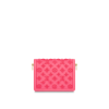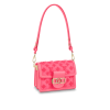 The Dauphine MINI in bright pink calf leather, part of the LV Rose Fluo capsule collection. The bold hue and the soft texture of the Monogram pattern embroidered in tuftage on the leather are appealing. The Maison’s craftsmanship in leather processin