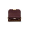 22 x 12 x 4 cm (Length x height x width ) •Removable leather strap and golden chain for shoulder carry •Golden color metallic pieces •Natural cowhide leather trim •Burgundy textile lining •Interior flat pocket