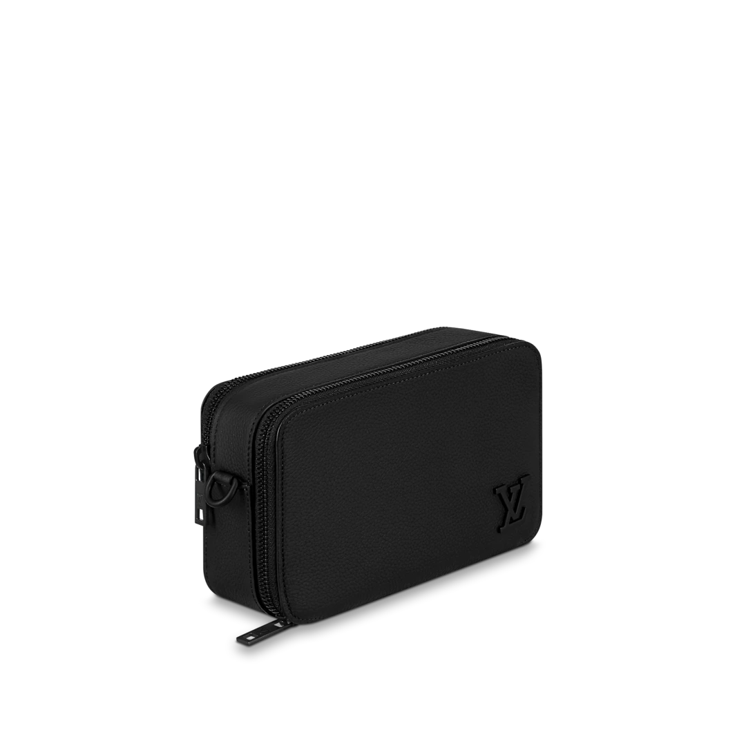 The versatile Alpha Wearable Wallet is fashioned from grained calf leather with discreet black hardware. Comfortable to carry, thanks to its adjustable and removable strap, it opens to reveal a gusseted interior large enough to hold two phones as well as cash, cards and other small essentials.