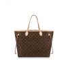 The Neverfull GM tote unites timeless design with heritage details. Made from supple Monogram canvas with natural cowhide trim, it is ultra-roomy but never bulky, with side laces that cinch for a sleek allure or loosen for a more casual look. Slim, comfortable handles slip easily over the shoulder or arm. Lined in colorful textile, it features a removable pouch which can serve as a clutch or an extra pocket.