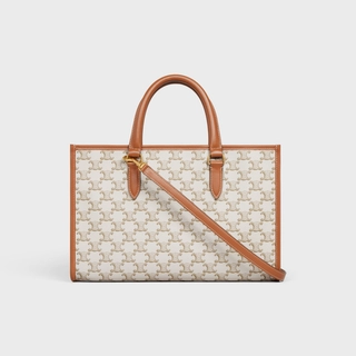 MINI HORIZONTAL CABAS IN TRIOMPHE CANVAS AND CALFSKIN WHITE