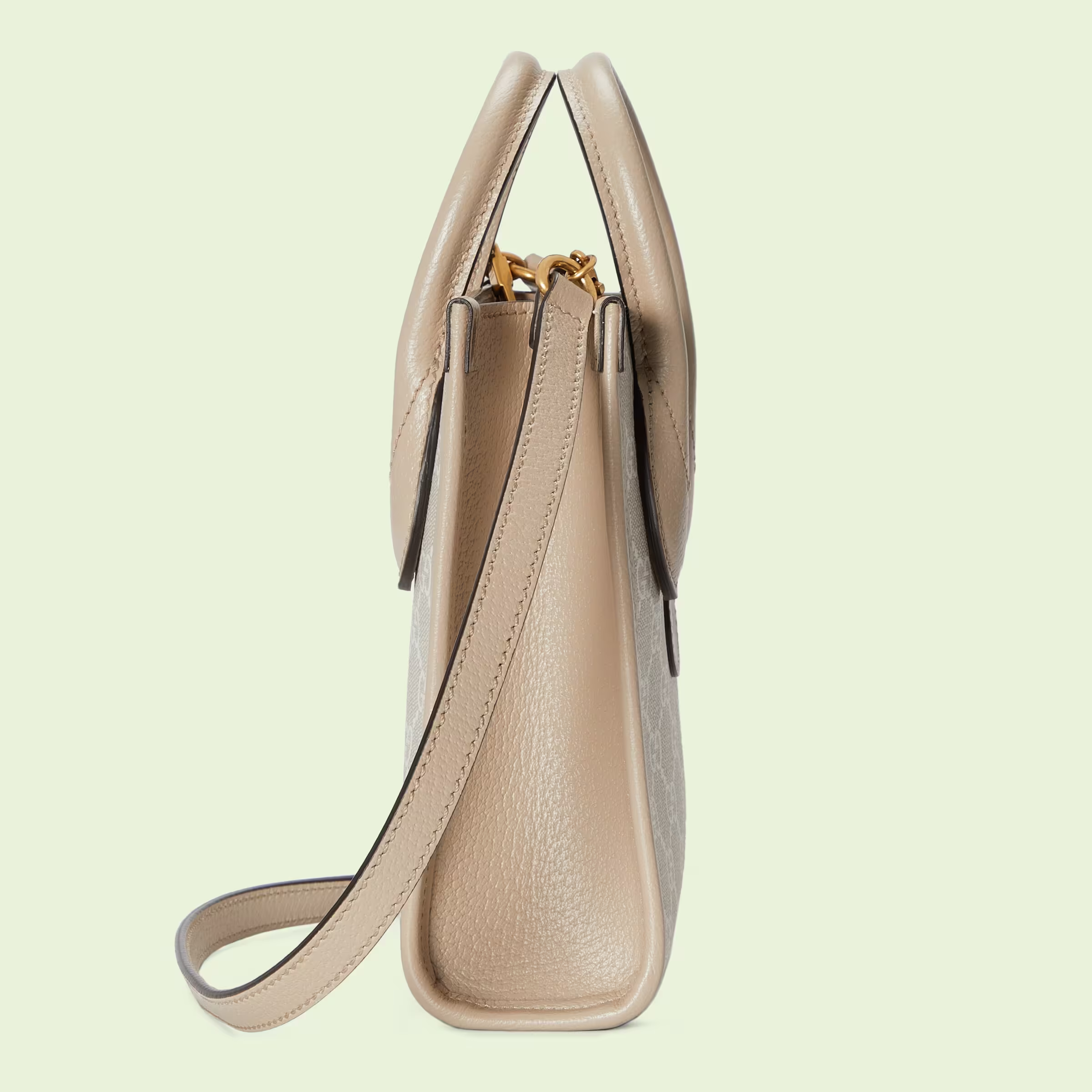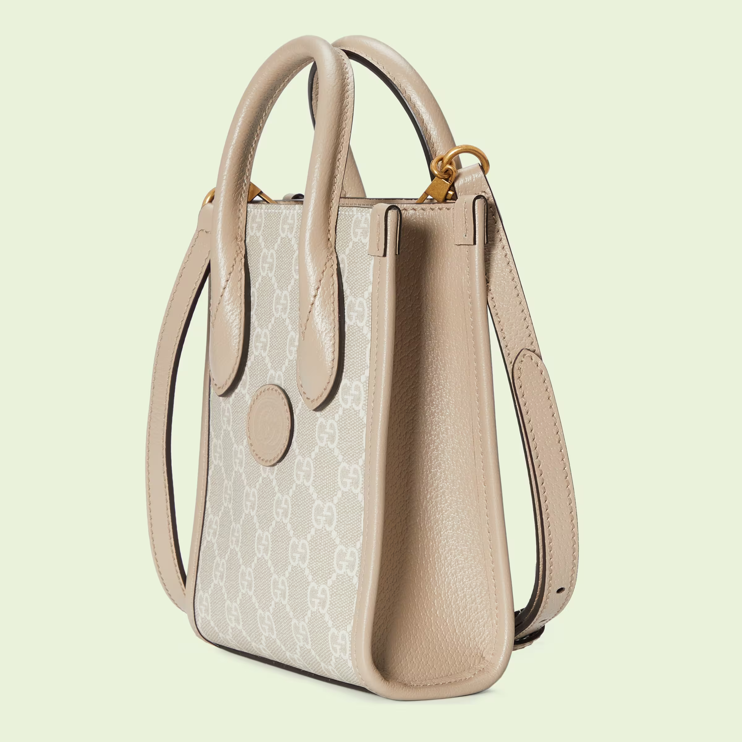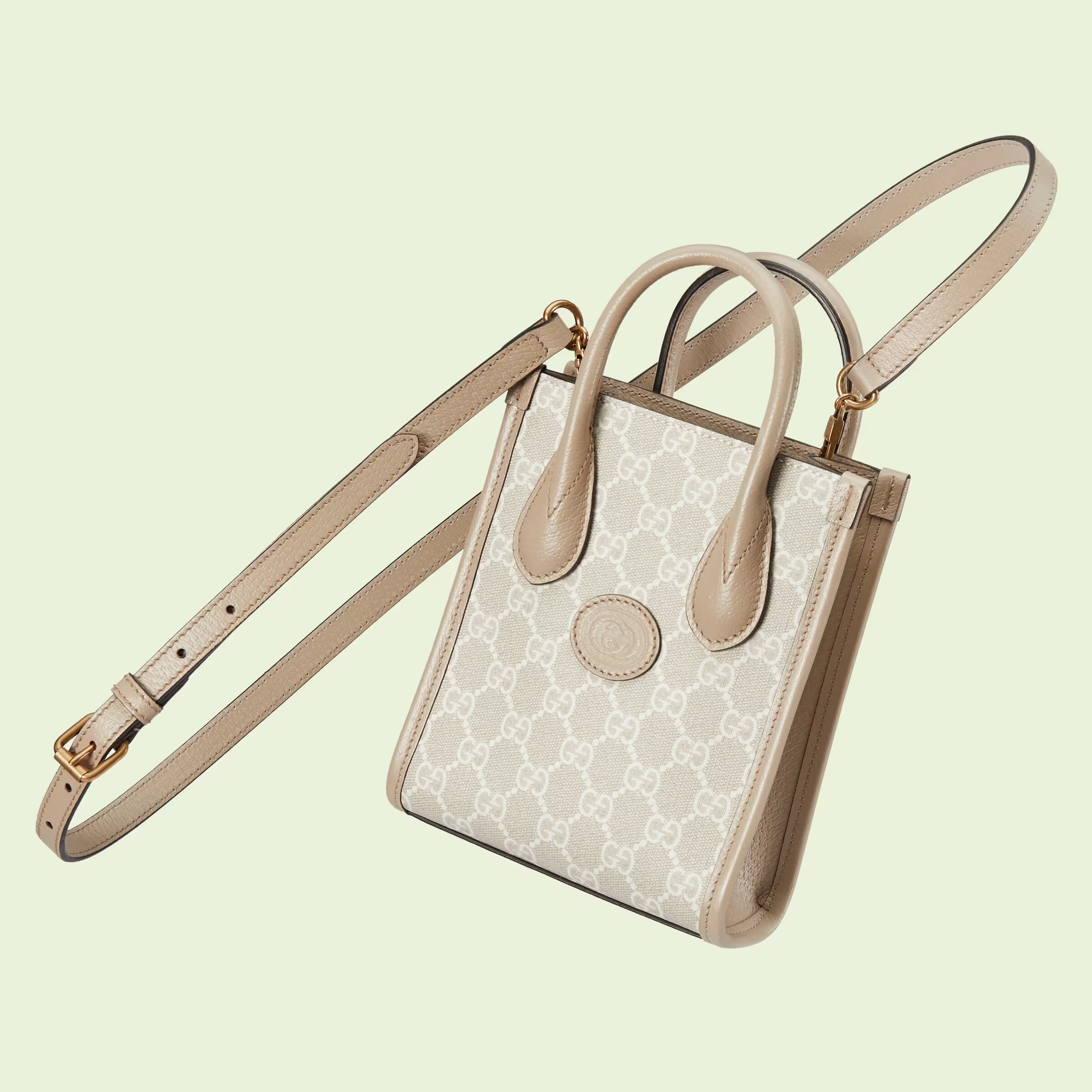 An archival design from the 1930s inspired the GG Supreme canvas, now one of the House’s most emblematic materials. Traditionally presented in beige and ebony, it appears here in a beige and white combination, an ode to timeless pieces and everlasting design. The mini tote bag is complete with an oatmeal leather trim and an Interlocking G tag.