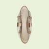 A heritage material from the archive, GG Supreme has been reimagined in Gucci Love Parade in different color combinations and combined with contemporary as well as classic styles. The Ophidia tote is presented in a beige and white variation of the signature material with a tonal trim. Originally a play on a ’30s design, the canvas speaks to the historical narrative that runs throughout the collection.