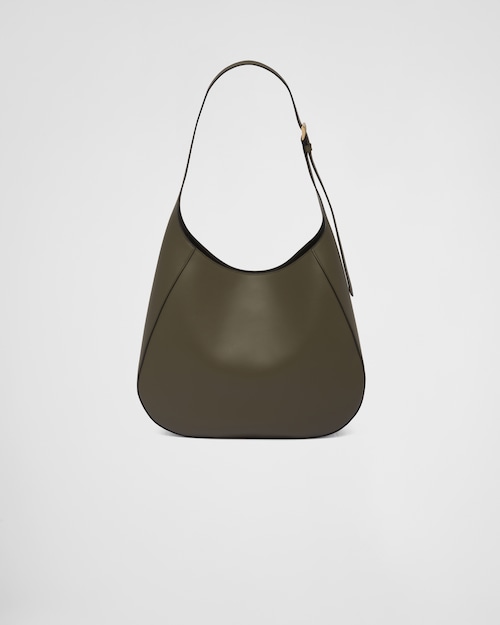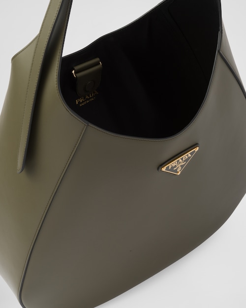Prada Large leather shoulder bag with topstitching – Military Green/Black