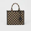 Introduced for the first time on trunks designed by Mario Prada, the Prada triangle expresses uniqueness and modernity through its universal, minimalist shape that is reinvented in a different way each season. Here, the geometric design is transformed into a sophisticated yet modernist pattern that plays with contrasting colors and decorates this sleek tote bag. Details in the brand’s iconic Saffiano leather embellish the design completed by a detachable shoulder strap that allows it to be worn in different ways.Product code: 1BA354_2FKL_F0Y30_V_OOMSaffiano leather detailsEmbroidered fabric handlesDetachable adjustable 110 cm Saffiano leather shoulder strapRemovable leather keychainMetal hardwareEnameled metal triangle logo on frontPrada logo-print nylon lining with two pockets, one with zipperHeight: 22cmLength: 9cmWidth: 28cm