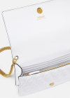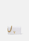Crafted from leather in a quilted V-pattern, the Virtus clutch features a Barocco V with engraved acanthus leaf detailing and magnetic flap closure. The small evening bag can be hand-held or suspended from a thin, detachable chain.