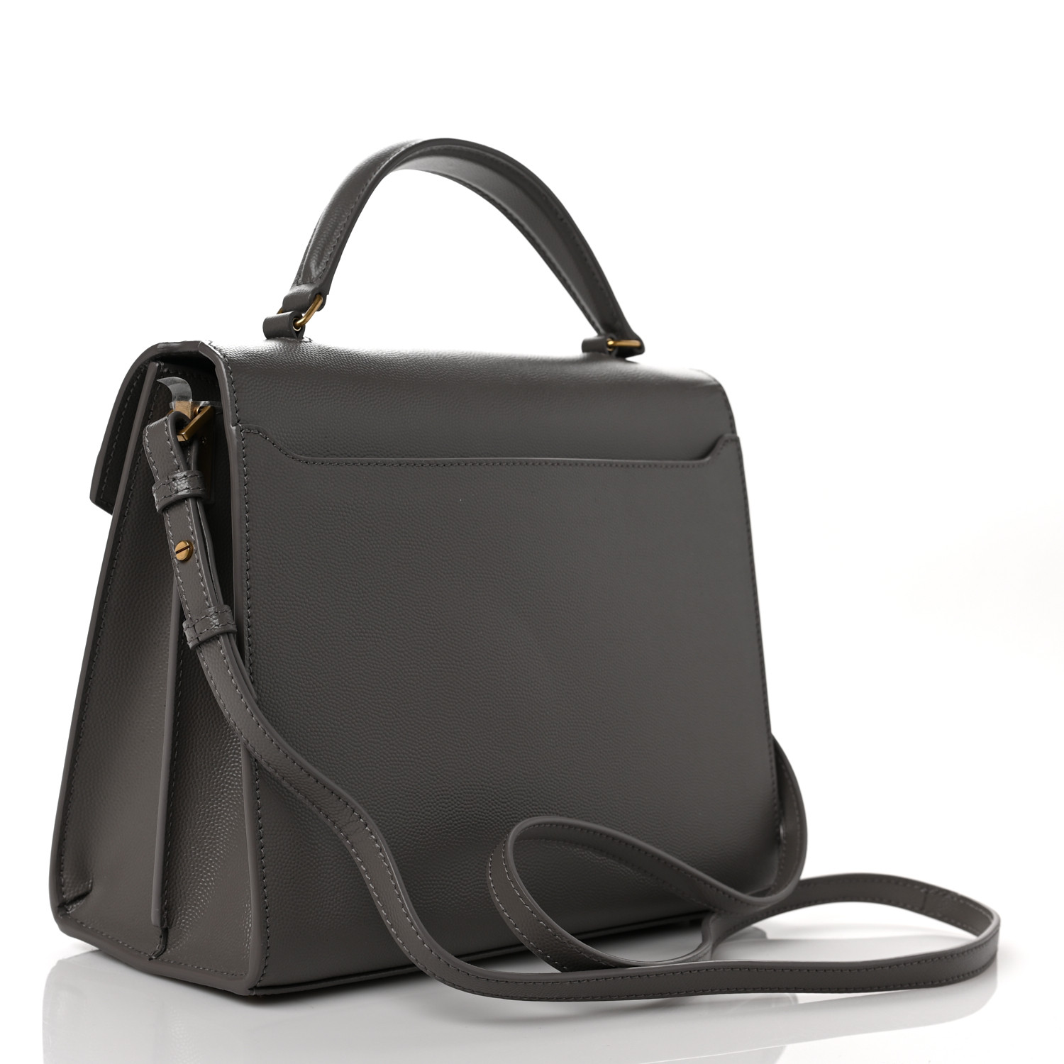 YSL Cassandra Medium Top Handle in Grain de Poudre Embossed Leather